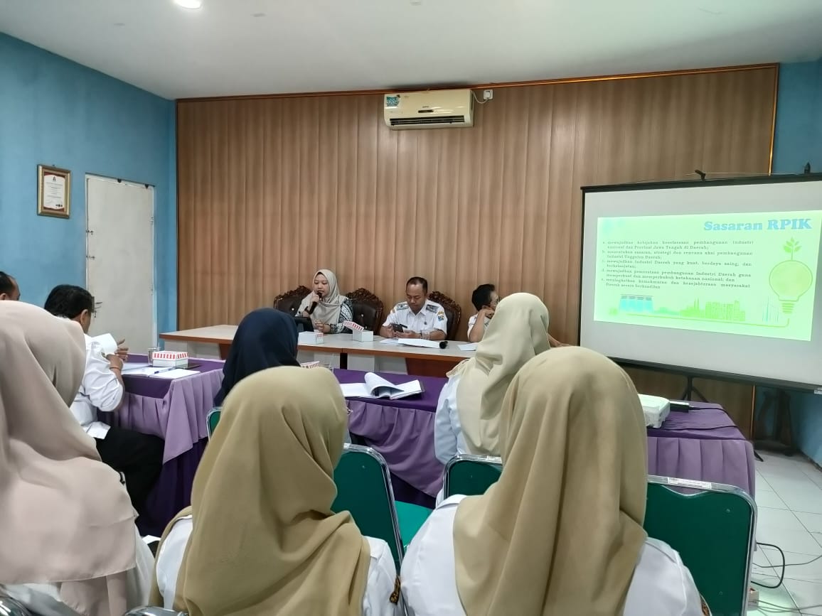 Rabu, 29 Oktober 2025 Kegiatan FGD/paparan rancangan awal penyusunan dokumen RPIK tahun 2025-2045 bertempat di Aula Dinas Tenaga Kerja dan Perindustrian Kab. Demak, dihadiri oleh DLH, Dishub, Dindagkop, Bapperida, Dinputaru, DPMPTSP, Bagian Hukum Setda dan konsultan dari CV Tiga Sahabat Cendekia. Kegiatan dibuka oleh Kepala Dinas Bapak Agus Kriyanto, SE MM, bahwa produk akhir dari penyusunan RPIK ini adalah Perda tentang rencana induk pengembangan industri Kabupaten. Kondisi eksisting, pertumbuhan ekonomi Kab. Demak mencapai 5,06% dengan kontribusi sektor industri 4,77%, menunjukkan kinerja yang baik. Namun, tingkat pengangguran terbuka masih tinggi di angka 4,75%, yang mana penyumbang terbesar TPT dari lulusan SMK, menunjukkan belum optimalnya lulusan SMK dengan kebutuhan industri. Pengembangan industri juga perlu berbasis potensi lokal, seperti tanaman tembakau di Karangawen, Mranggen, dan Guntur. Saat ini pengembangan industri masih terpusat di Sayung dan Karangtengah yang rentan rob, meski strategis secara lokasi. Dilanjutkan pemaparan materi dari CV Tiga Sahabat Cendekia dan diskusi terkait saran dan masukan dalam penyusunan dokumen RPIK.
