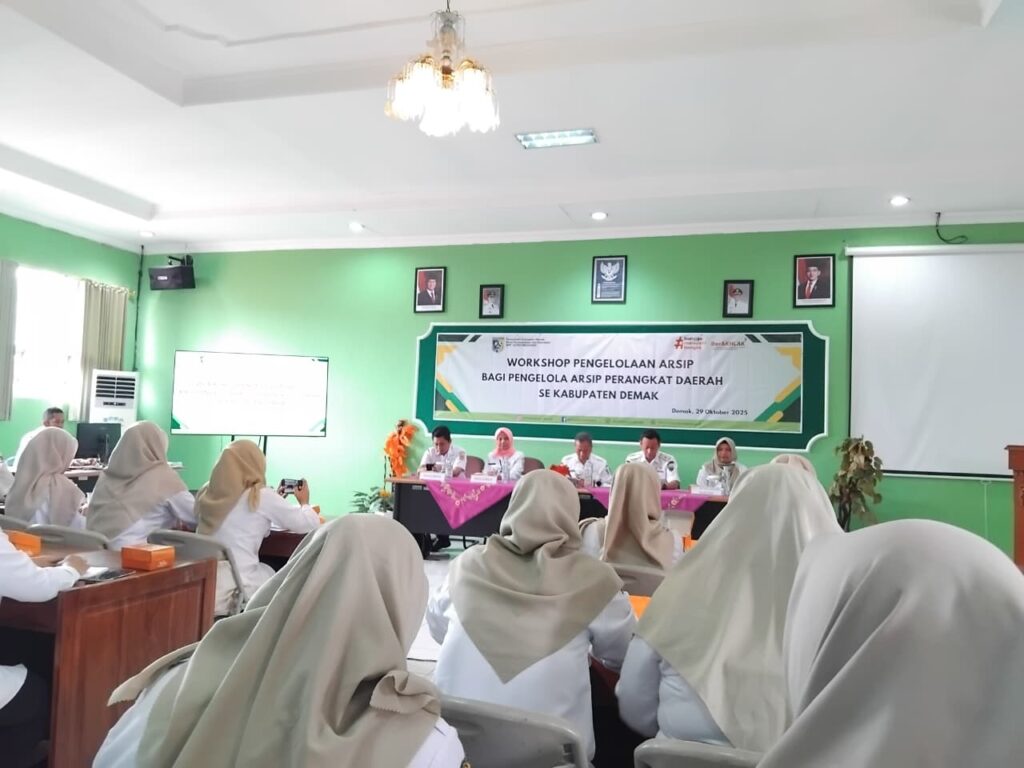 Kegiatan Workshop Pengelolaan Arsip Bagi Pengelola Arsip Perangkat Daerah Se Kabupaten Demak pada Hari Rabu, 29 Oktober 2025 di Aula Dinas Perpustakaan dan Kearsipan Kabupaten Demak. Acara di selenggarakan oleh Dinas Perpustakaan dan Kearsipan, Narasumber acara dari Dinas Kearsipan dan Perpustakaan Provinsi Jawa Tengah. Peserta workshop dari Perangkat Daerah Se Kabupaten Demak. Acara workshop membahas tentang tatacara pengelolaan arsip yang efektif, efisien, baik dan benar.