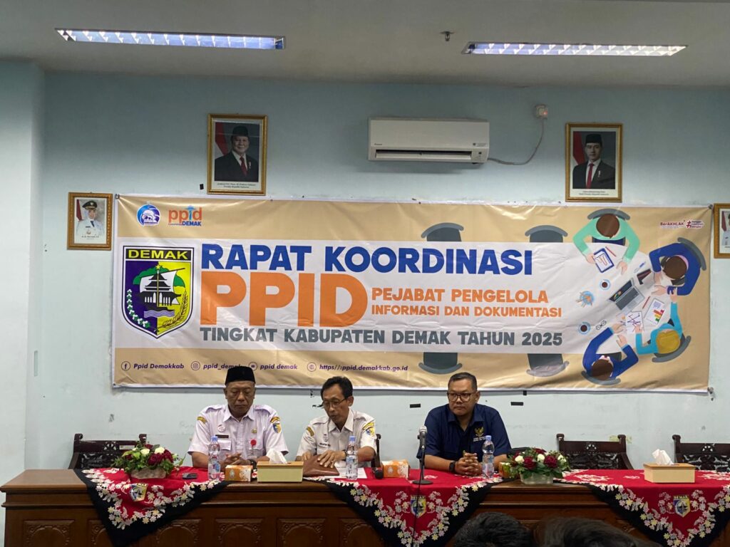 Rabu, 8 Oktober 2025 mengikuti kegiatan Rapat Koordinasi PPID tigkat Kabupaten Demak yang bertempat di Ruang Ballroom Gedung C Setda Kabupaten Demak. Kegiatan dibuka oleh Sekretaris Dinkominfo Bapak Indrijantoro Widodo, S.E., M.M dan diikuti oleh opd se-kabupaten dan 14 Kecamatan Demak, dalam rapat siang ini dengan narasumber Indra Ashoka Mahendrayana, S.E., MM Ketua Komisioner Komisi Informasi Provinsi Jawa Tengah. Dalam rapat ini membahas mengenai Mewujudkan transparansi dan akuntabilitas dalam penyelenggaraan pemerintahan, Memberikan layanan informasi yang cepat, tepat, dan sederhana kepada masyarakat, Meningkatkan partisipasi masyarakat dalam pengawasan dan pengambilan kebijakan publik, meningkatkan informasi terkait dengan pelayanan publik.