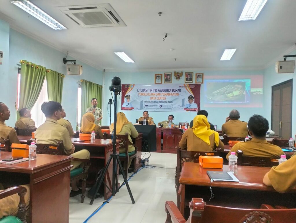 Rapat Koordinasi dan Literasi TIM TIK Kabupaten Demak dalam Pengelolaan Dan Pemanfaatan Data Center dilaksanakan pada Hari Selasa, 16 September 2025 bertempat di Ruang Rapat Gedung C Setda Lantai 2 (Ruang Wakil Bupati), Kegiatan dibuka oleh Bapak Indriyantoro Widodo (Sekretaris Dinkominfo). Narasumber kegiatan meliputi dari bapak Ulin Nuha S.Pd, bapak Busro, bapak Mansyur dari Anggota Komisi C DPRD Kab. Demak dan Achmad Juliantono, S.Kom (pengelola data center Prov. Jateng). Pemerintah Kabupaten Demak memiliki data center akan tetapi masih belum optimal secara sarana prasarana sehingga membutuhkan koordinasi dengan data center dari Provinsi Jawa Tengah dan Kementerian Komdigi.