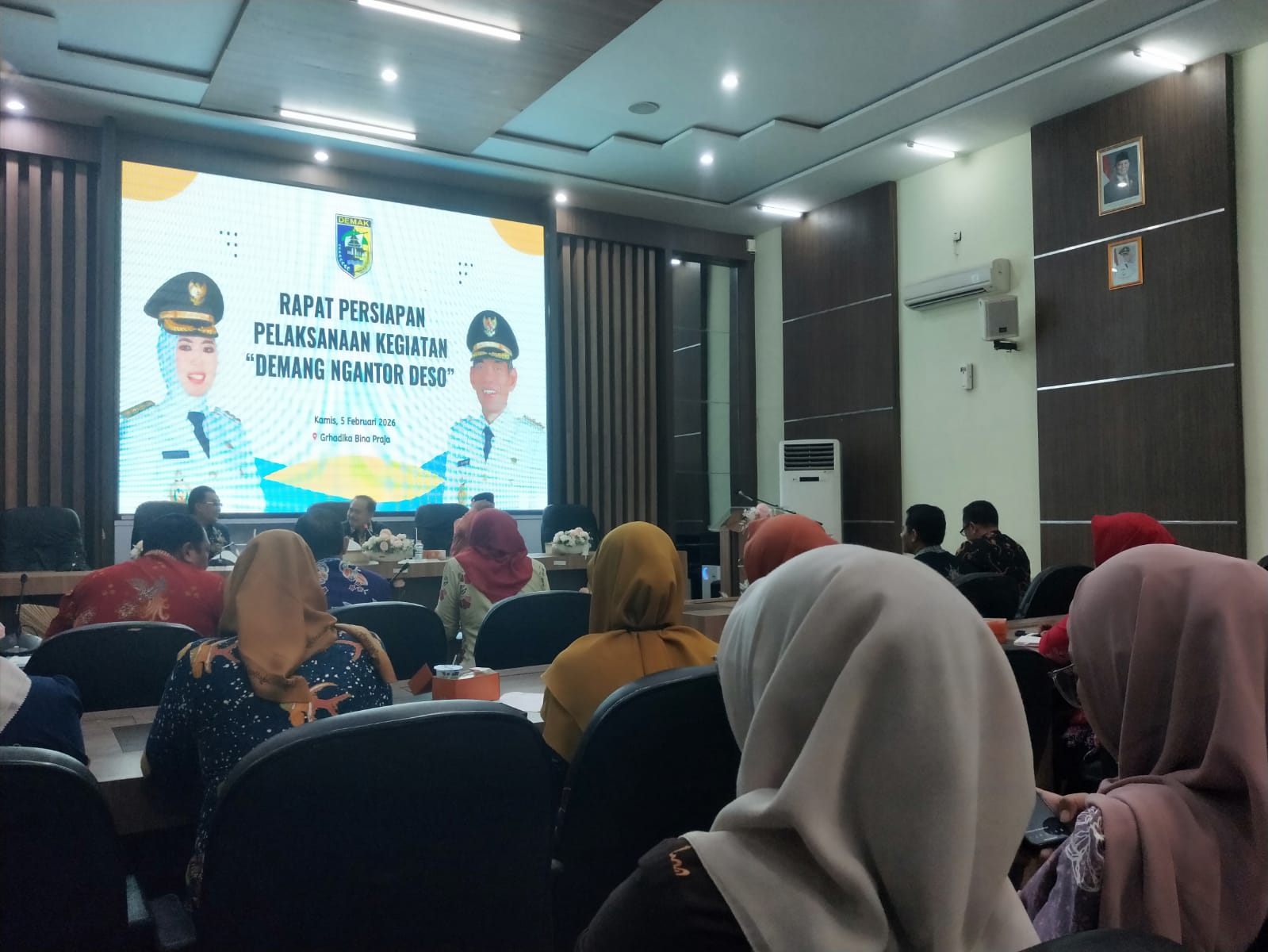 Rapat persiapan pelaksanaan kegiatan “Demang ngantor Deso” kamis, 5 februari 2026 di Bina Praja, keg dibuka dan di pimpin oleh Ass 2 Setda Demak, dengan di hadiri dampingi oleh BKPSDM, BAPPERIDA, BPKPAD, Dinkes, DPMPTSP, sel camat dengan leader dari Bagian Pemerintahan, program ini merupakan prioritas dari perwujudan komitmen pelayanan publik kepada masyarakat dan sinergi lintas perangkat daerah dengan stakeholder